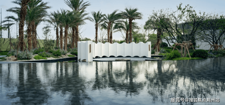 实景呈现的岛屿水院,作为保利天奕五座全球大师花园之一,在银海枣树阵、下沉式庭院、镜面池畔卡座的呼应中,成为未来居者沉浸自然的惬意之地。温柔闲适的落日廊吧,犹如身处海岛之畔,感受蓝调时刻的优雅情调。