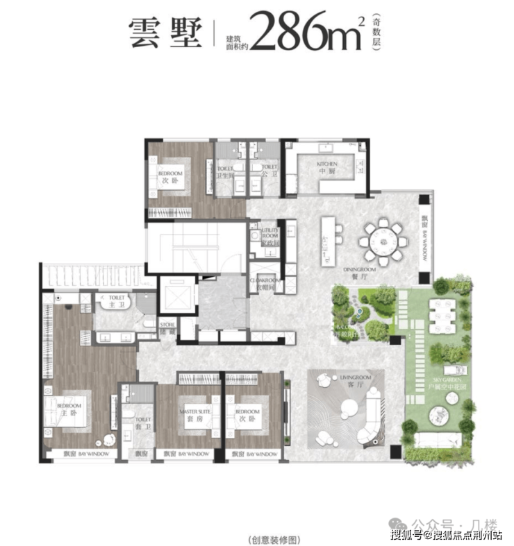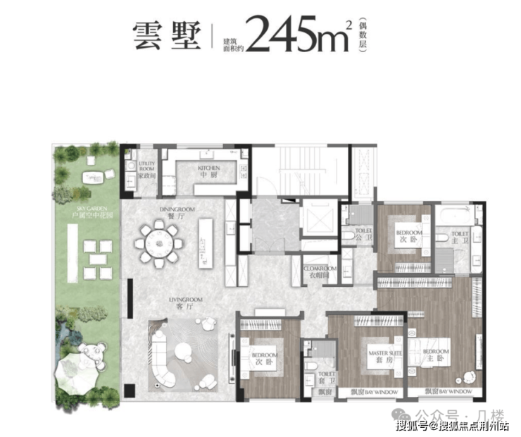 除了193户型外,空中花园更大的245㎡、286㎡户型,尺度更阔绰,空中花园的观景视野更佳,功能性更强。