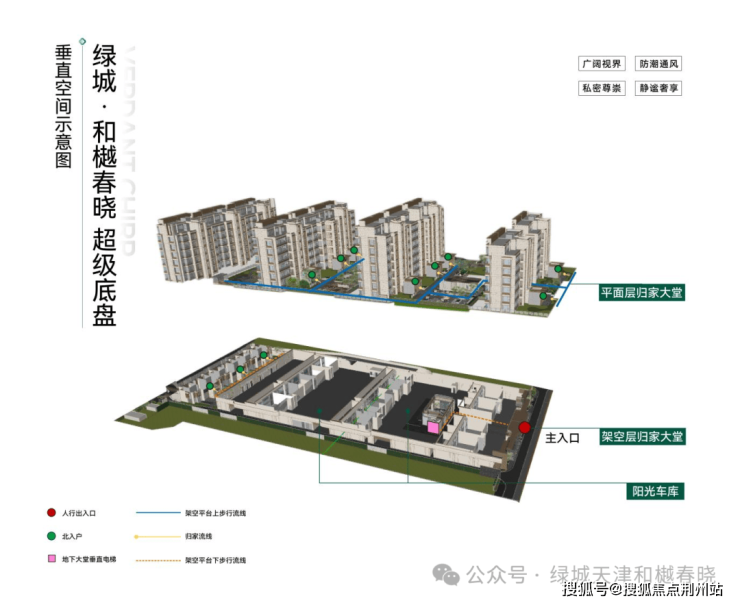 绿城·和樾春晓 4.0超级底盘以5.8米高度 “浮” 于高台,视野率先挣脱地面束缚 —— 无需透过低矮楼宇眺望,抬眼即见天际线与街巷烟火交织,傍晚归家还能邂逅落日漫染建筑群的景致。这份惬意藏着硬核安全感:高台与街道的自然高差形成无形 “结界”,隔绝路人窥探与车流喧嚣,宅间活动无需担忧车辆或陌生人干扰,每处空间都透着 “安心”。车型归家动线、人行归家动线、自行车/电动自行车归家动线,每处的细节规划都彰显绿城的用心服务。