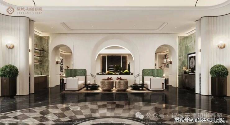 采用代表城市精英生活方式的Art Deco设计风格,营造奢而有度的传世雅奢意境空间一步一景,宜美宜观,大面积淡雅的米黄尼克石局部点缀来自意大利的普拉达绿跳跃其中,强调色调的对比和均衡。镶嵌乱纹古铜金属线条营造唯美的光影效果,提高环境舒适度的同时,也由意境自然递进至新境。