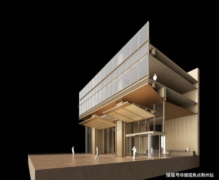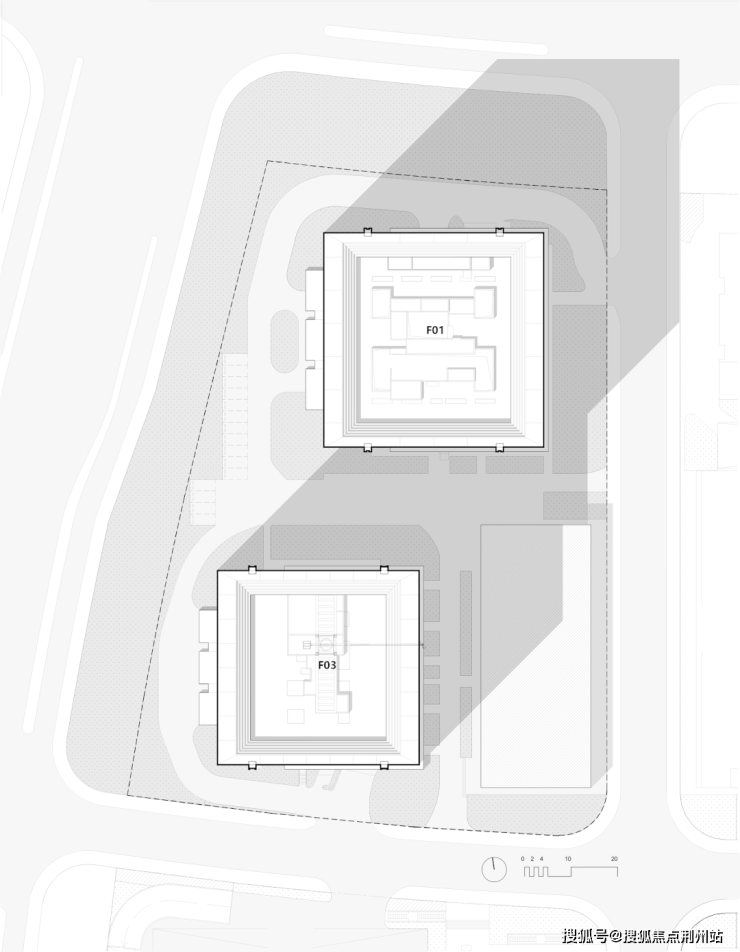呼应:通过延续体块划分逻辑,在西侧城市界面上,如“视窗”般的玻璃体量形成逐级上升的错落关系,从而形成呼应。山墙面四个柱子凸显,从底到顶“支撑”玻璃体量,强化极具辨识度的造型关系。