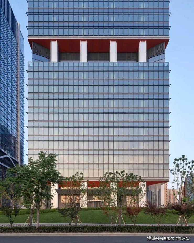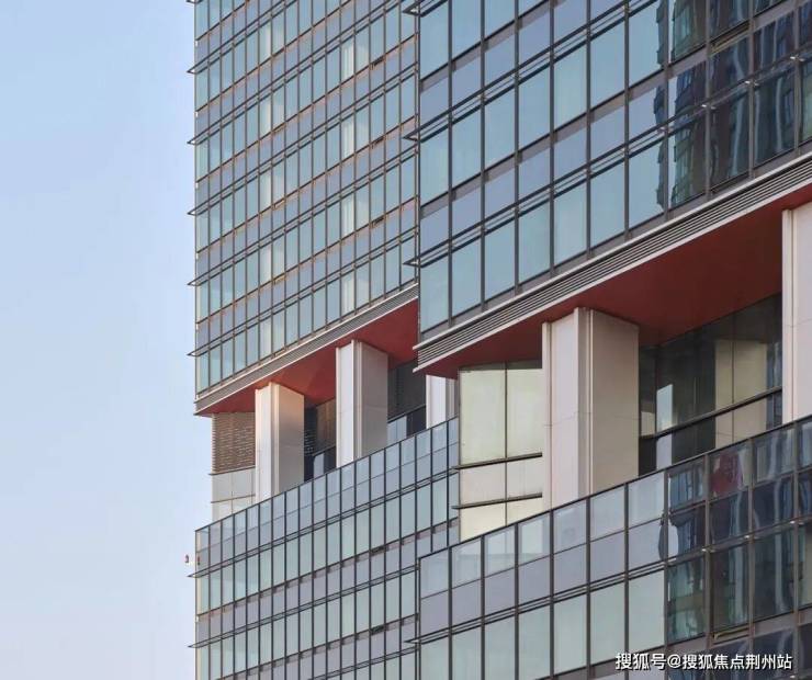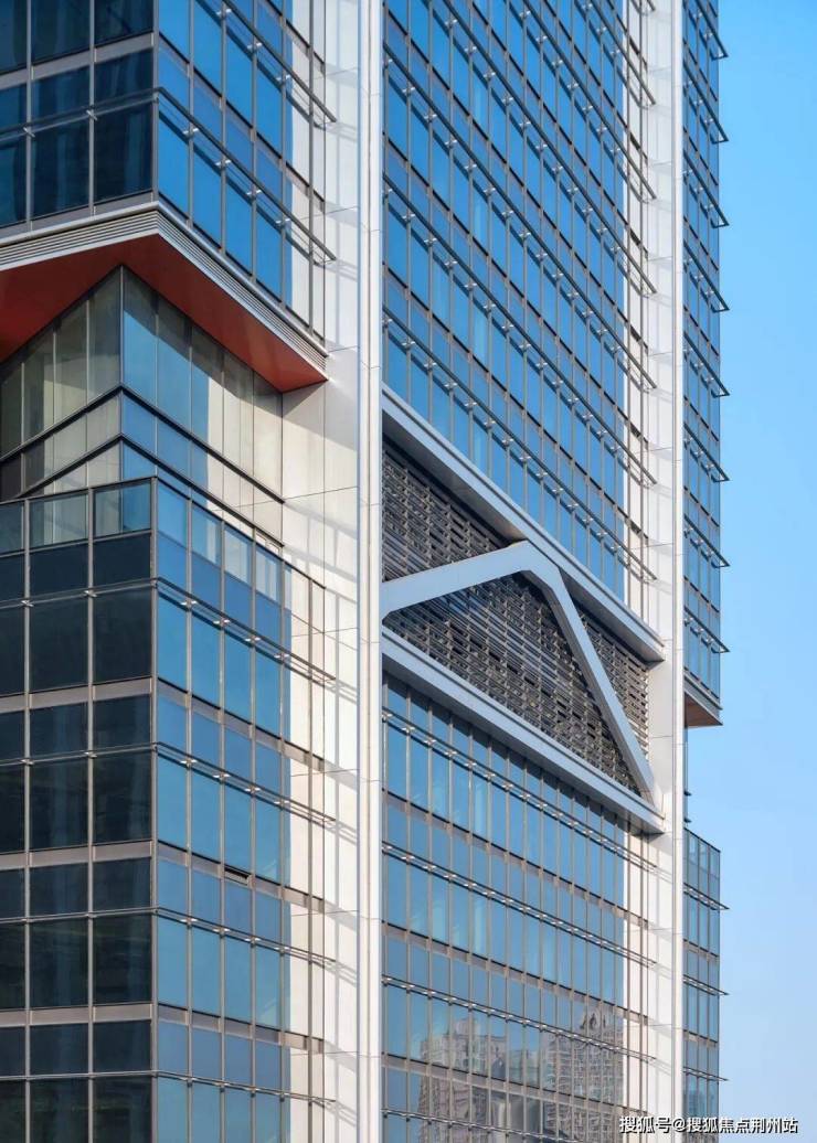 山墙的柱子并非只是装饰,而是结构结合造型,取消传统转角部必需的结构柱,两侧分别留出约9 m的玻璃界面,使每层转角形成270°无遮挡景观面,几乎消弭建筑表皮的“边界感”。重新定义了南京高层办公的空间。