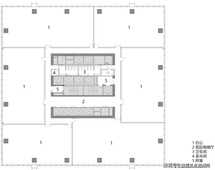 标准段平面(四个转角均开放无柱) ©上海都设营造建筑设计事务所有限公司