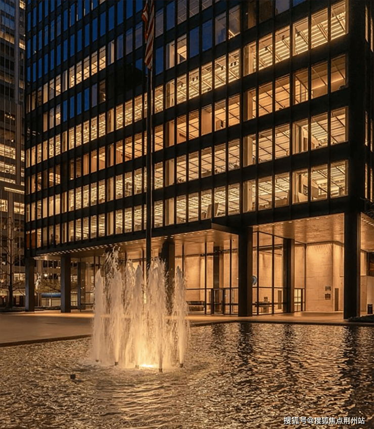 密斯在西格拉姆大厦中通过底层后退实现了大堂的无柱和自由,结构的真实性以及底层空间的自由度使其成为现代主义高层建筑的典范。