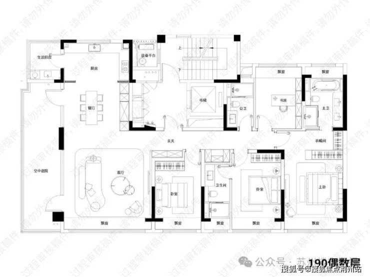 四代住宅洋房 (建筑面积约156-190㎡):精装修交付,最大特色在于奇偶层错层设计的露台系统,旨在保障每户都能拥有可使用的空中庭院。