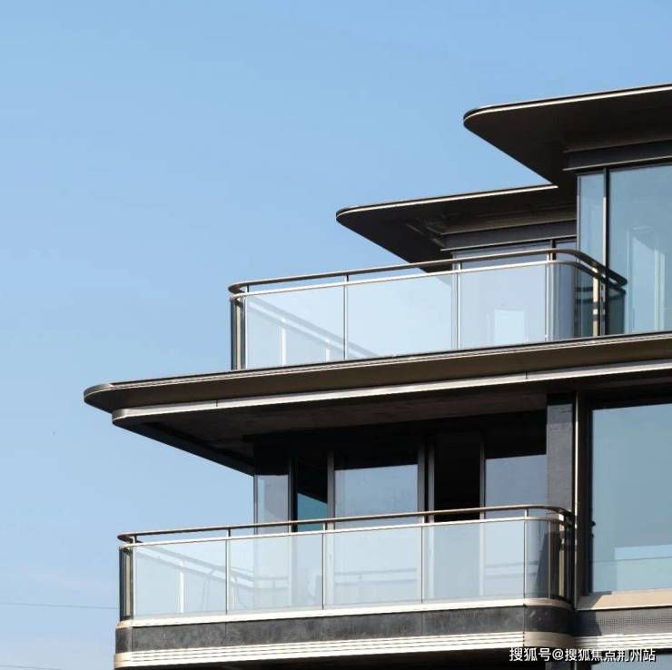 排屋立面以香槟金与深灰双色铝板勾勒出流畅的线条,并运用圆弧热弯玻璃工艺,塑造出充满张力的超流体美学轮廓,建筑如游艇般停泊于TOD岸。