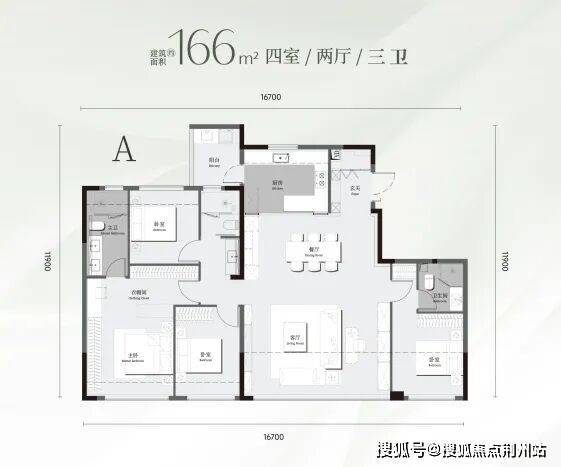 建面约143m²中央环岛——客餐/厨/阳台一体化,阳光充沛的中央环岛,家庭生活与社交活动的欢聚主场