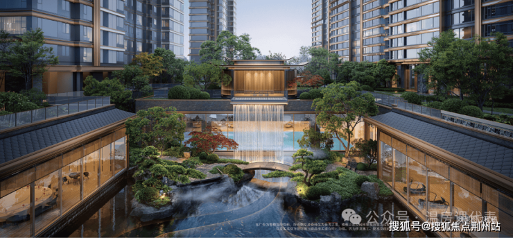 项目引瓯江水韵入园,以入院水景、下沉中庭水景、壮观飞瀑等特色水景,呼应门外江水滔滔,打造立体化诗意景观