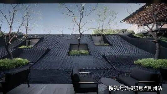 安澜府的归家入口,设计师汲取江南在地文化,提取榫卯结构、雨打屋檐、乌篷船、乌漆墙、木格栅等传统元素融汇成隐逸大宅的归家仪式感,为人们再现儿时“雨打屋檐”的记忆,以传统与现代的碰撞融合,打造当代绍兴大宅。在后续陆续的开发中,“青瓦”被演绎为中兴国际湖区建筑的一种情感符号;建筑引入金属格栅立面设计,打开建筑内外之间的互动、双首层格局创新,引得全城低密对标。