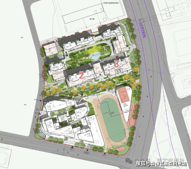 2、3号楼南侧紧邻规划的九年制学校,对视野采光影响很小,且楼下就是学校,还能实现真正的目送式教育;南侧的高线公园、北侧的小区中央景观,都让2、3号楼的视野景观极好。
