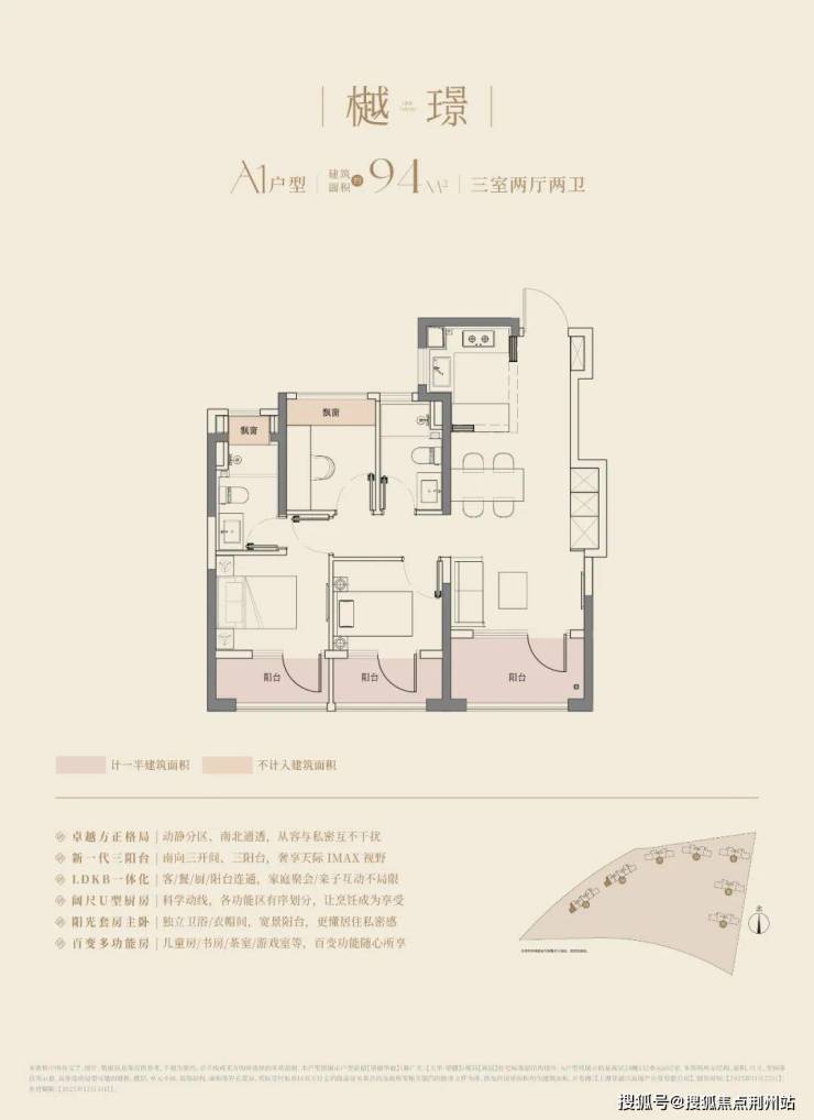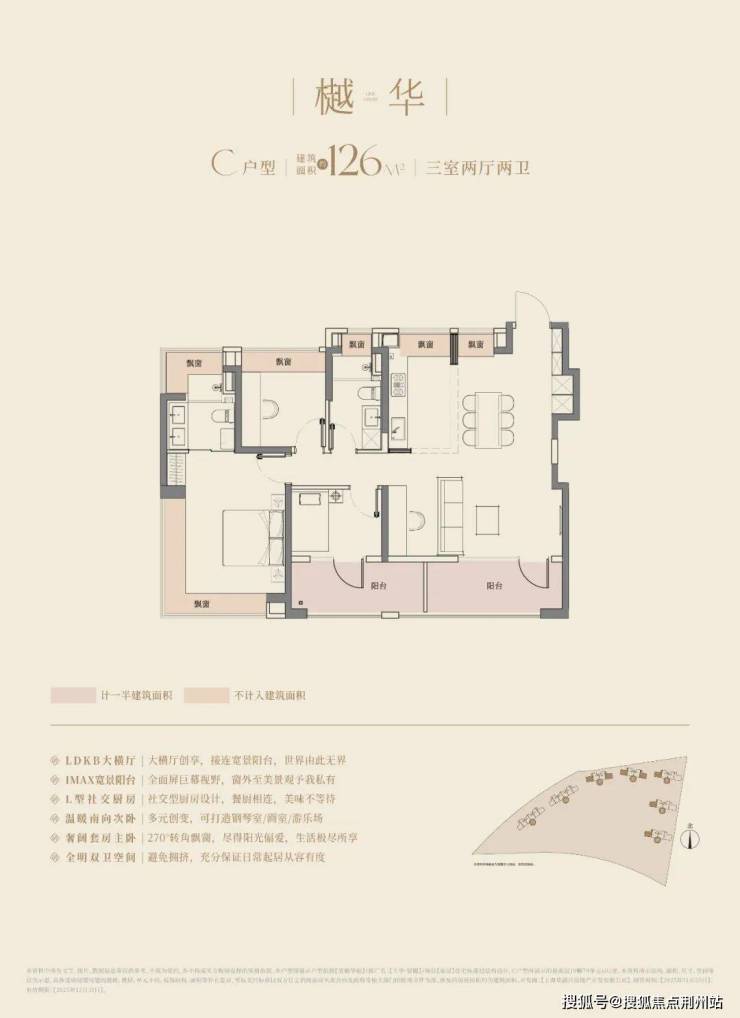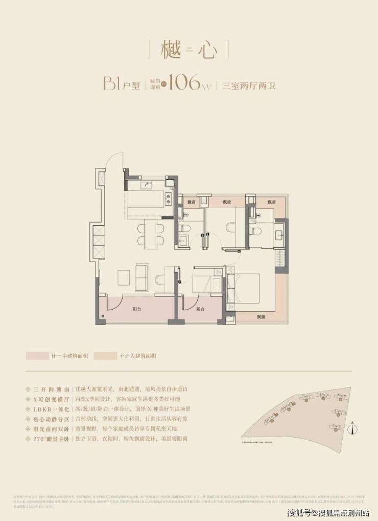 经典动静分离户型,预留分户“S”墙设计,三开间朝南+双阳台,阳台合仅计算一半建筑面积,主卧以及主卫附赠270°转角飘窗;