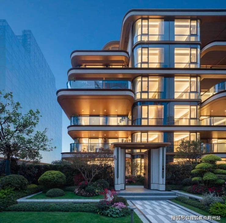 如今项目已出落得亭亭玉立,建筑外立面采用大面积落地玻璃配合弧形转角,形成通透的双曲面屏效应,一眼望去便是豪宅无疑。