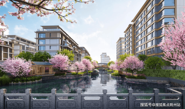 项目还是苏州少有的枕水人家。一条约500米自然水系贯通社区,将南北两区自然分隔成两个独立组团,“飞虹”卧波连接两岸,形成隔而不离、枕水而居的双重生活意境。这样的景观资源和生活情趣,在整个苏州都无法复刻。