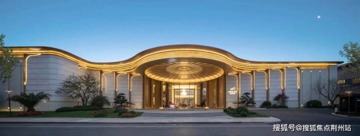 望舟府的大门是板块首个滨江造的琉璃穹顶大门。主入口景墙宽约70米,高约10米,中轴对称的酒店式落客设计,打造板块首个300方车马院,尊崇归家仪式感。