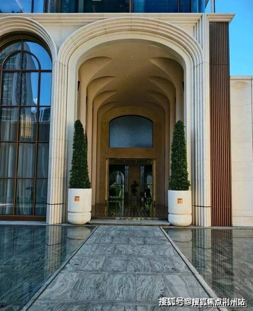 穿过约12米高的大门,来到一个「光影水院」。水院两侧是高达8米的景墙,采用西班牙贝金米黄石材,造价超过500万元。水院中厅的马匹艺术装置,由当代艺术家王从义设计。