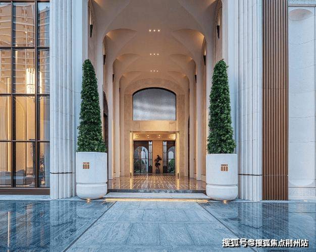 不同于传统住宅,咏印明庐的示范区采用了大量的拱门造型与弧线元素,给人一种非常强烈的欧式建筑秩序感。外立面以白色石材、古铜色金属线条、大面玻璃为主,颜色经典又克制。初见,确实有一种耳目一新的感觉。