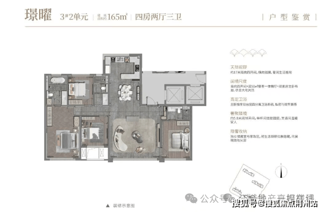其中,建面约165平大四房空间尺度超越传统200+大平层,为终极改善量身定制。