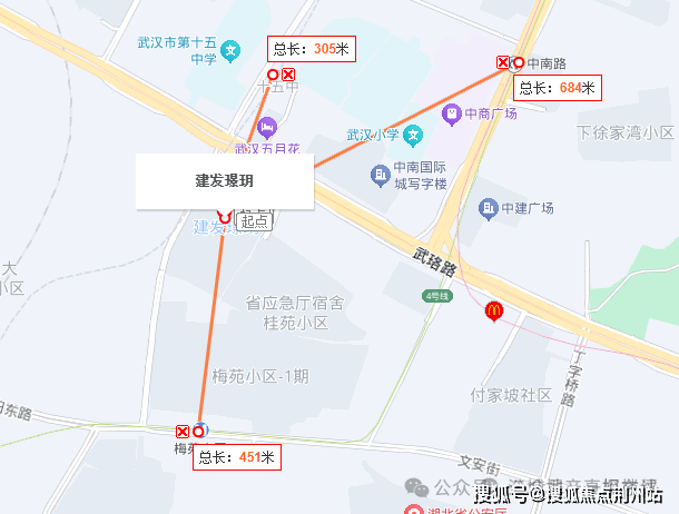 建发璟玥南侧约400米是4号线梅苑小区站,北侧一路之隔便是在建的12号线十五中站,到2号线中南路站直线距离也仅约600多米,出门就有三地铁,占据武昌核心交通枢纽。