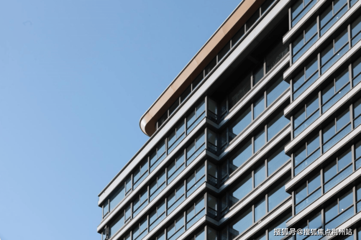 现代简约的外立面,超高的窗墙比,既保证了立面的美观耐看、历久弥新,又带来了舒适实用的生活体验;大面积的落地窗,加上高级感十足的灰色铝板,呈现出高级简约的美学观感;金色的曲面造型铝板,将建筑打造成独特的城市风景线。