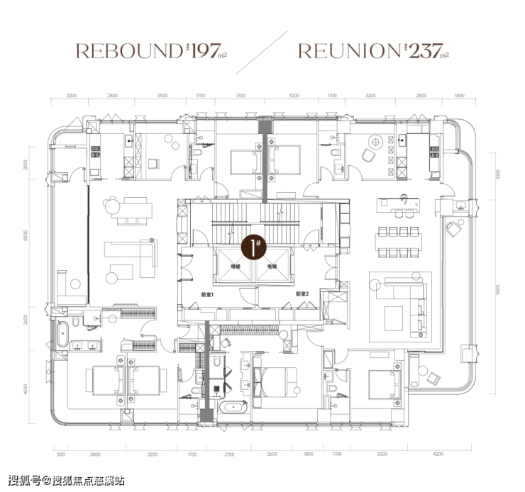 今年首开1栋的小高层住宅,约42套197-237㎡四房大平层。