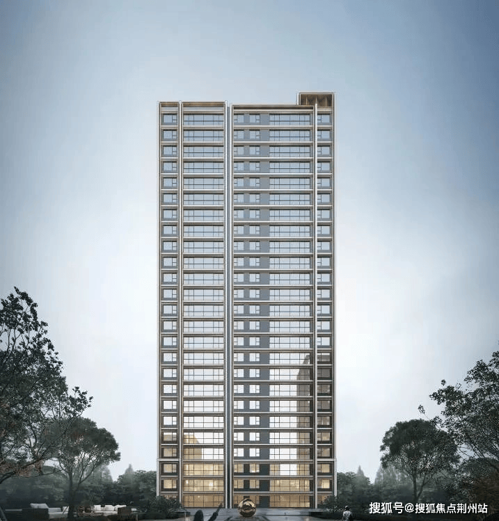 项目外立面以现代简约风为主,纵向伸展线条,将立面体块切割出黄金比例。