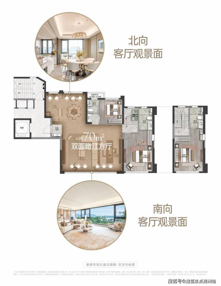 ·约15㎡百变 X 空间可与方厅联动,拓宽为约8.1米宽幕横厅,成就约70㎡双面瞰江方厅直面江园双景;