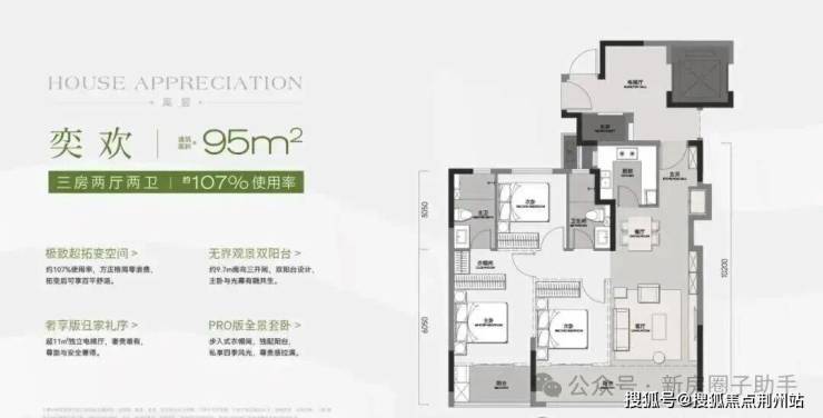 天创云和奕的户型设计颇具竞争力,在保证高得房率的基础上,兼顾了不同客群的需求。特别是建面约95㎡小户型能实现独立电梯厅,在同类产品中具备一定稀缺性;而大户型则在空间尺度与舒适性上表现突出。