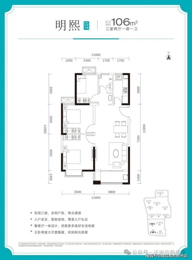 功能性设计:全明户型,高利用率(如64㎡两居、106㎡四居),赠送飘窗/阳台空间;