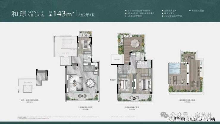 约143㎡上叠,经改造可做3房3卫,拥有约7.4m开间+270°全景舱横厅+约6.2m挑空客厅,并且四层和屋顶层均赠送大露台!