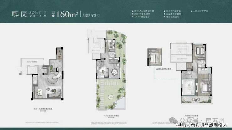 例如约260㎡联排,约11.4米超大面宽;地下室挑高约5米;地上3层,5房6卫,且为全明卫;