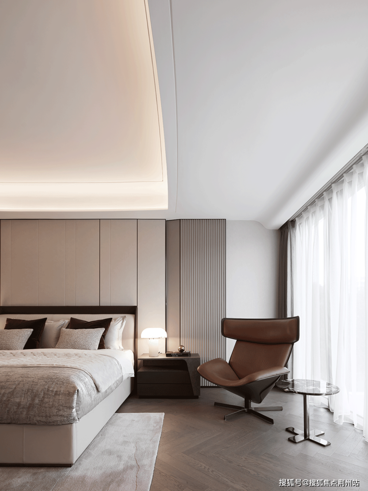 平和疏朗的氛围,是尘世繁碌后的休憩,也安抚纷扰的思绪。主卧的情绪在层层递进后随着不同的触感徐徐展开。