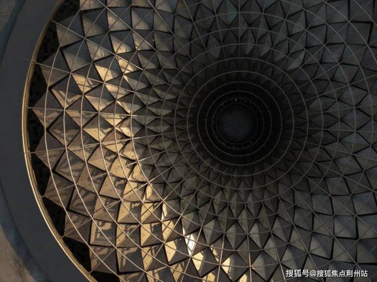 来到入口落客院,首先感受到的是约250米长的超长景观墙界面,以及42m宽、4.8m高的仪式感门厅,入口采用酒店式环岛落客,中心设置寓意「天下四聚」的艺术装置,不仅展现出归家的蕴贵门面和仪式感,还与苏扇工艺打造的黄金池底基座互相辉映,随着光影延时旋转,将归家升华为一段熠熠生辉的时光之旅。