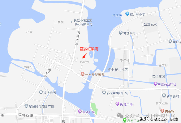 项目位于吴江盛泽,盛泽大道与东方大街交汇地带,北依红梨湖(今桥北荡),南临西白漾,是盛泽“一心两轴多片区”城市规划重要组成。所在WJ-J-2023-001号地块由盛泽投资竞得。