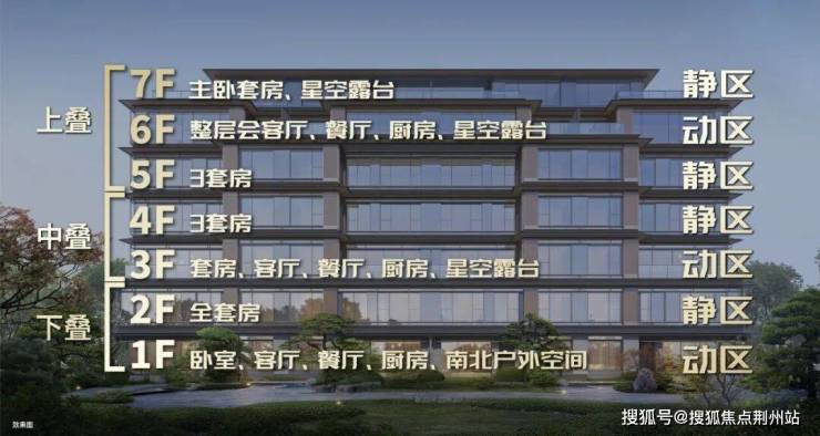 颠覆型户型,高净值圈层共识。建面约180-300㎡的叠加产品,更是以“垂直四合院”理念引发市场惊叹。