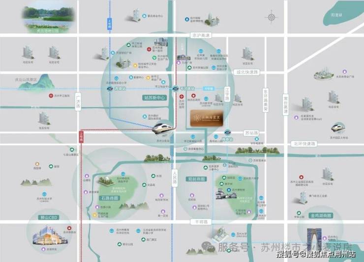•立体交通:轨交2/4/6号线、北环快速路、苏州火车站、京沪高速、常台高速等