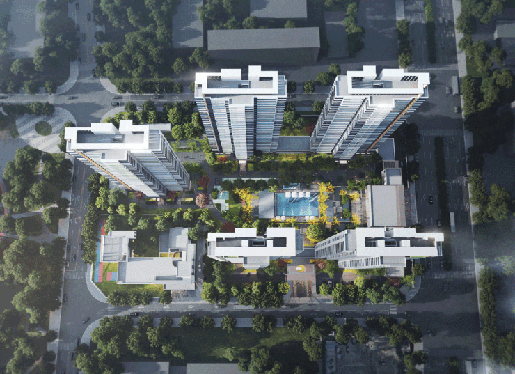 准四代住宅,主打109-165㎡户型,包括三房两厅两卫、四房两厅两卫、四房两厅三卫等多种户型,满足不同家庭需求。建筑特色:采用三段式设计,外立面为类公建大面积玻璃幕墙,搭配金属铝板和真石漆涂料,顶部采用鎏金塔冠造型,整体风格现代大气。南向立面窗墙比70%,阳台统一封窗户,保障整体立面的统一性整块土地容积率只有1.8,项目以“景观优先”为规划原则,仅布局7层洋房及15-17层小高层产品,大部分房源朝南并看河,并形成了超宽楼间距以及2大中庭园林景观。