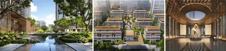 项目整体地势抬高四米,通过拔高的城市级景观通廊,将城市景观融入归家的仪式感当中。酒店式中庭大堂、下沉式休闲庭院、宅间首层泛会所,3大CLUB集书吧,玖宴,玖氧,玖阅等多功能为一体,构筑圈层社交专属的私享空间。中海式精装标准:防弹级门窗体系;一体化集成吊顶;场景式净层高;烟道消失术;墙缝消失术;品牌厨卫高标体系等百道精工细节若非亲鉴,不足以心领神会。