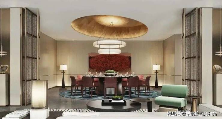 项目亮点:江叁號院以“精奢酒店式人居”为设计内核,将新加坡酒店设计理念融入建筑肌理,复刻了高端住宅的尊崇感与艺术感。入户空间更是点睛之笔:约 9.5 米挑高的大堂以巴西进口亚马逊绿大理石与西班牙米黄石材构筑,搭配手工漆天花板与5.5 米高的艺术装置《无名涟漪》,宛如步入国际精奢酒店;地下停车场的劳斯莱斯幻影星空顶与智能电动移门,让归家动线从起点便充满仪式感。这种将艺术美学与实用功能相融的设计,既是对滨江摩登生活的致敬,也让建筑本身成为江岸线的风景组成。