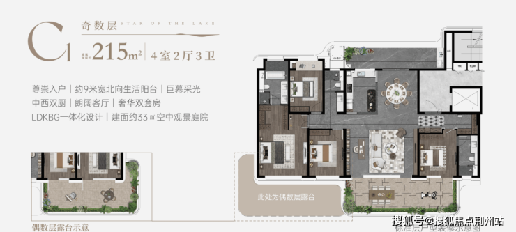 户型面积:主力户型143-240㎡,均为大平层设计,部分户型带空中庭院、270°转角飘窗,得房率高。