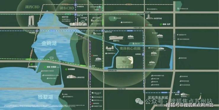 三轨穿插并行,5、6、8号线直达苏州各大核心区,金鸡湖大道、中环东线、现代大道、独墅湖大道等城市主干道汇聚在侧。