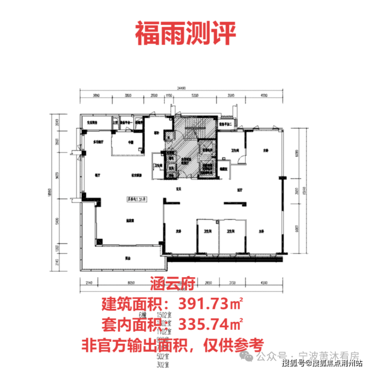 拿391㎡户型举例 —— 建筑面积 391.73㎡,套内直接干到 335.74㎡!客厅、卧室的 “奢尺感” 拉满,想做挑空、多套房、家庭厅都有发挥余地;再结合项目 “双河景” 优势,想象下在大横厅里看河景🌊~