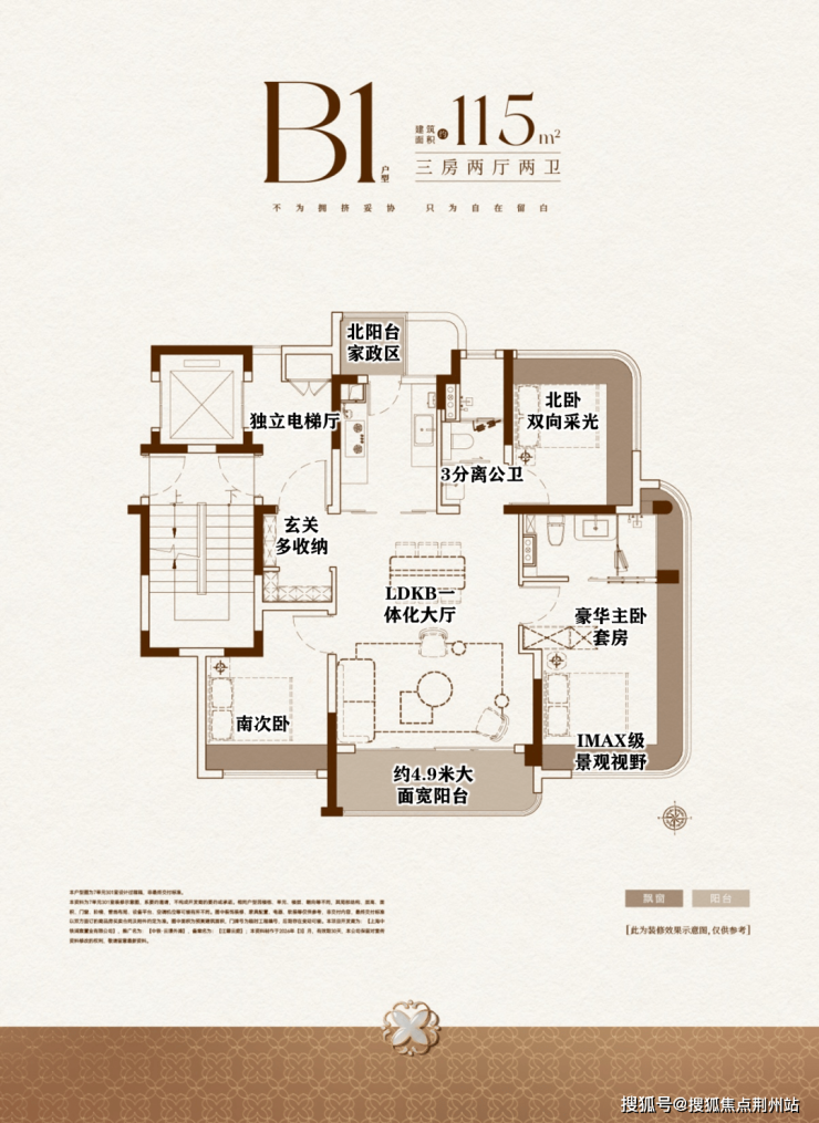 2、建面约115㎡:上海同面积段产品,罕有的约4.9米宽厅!