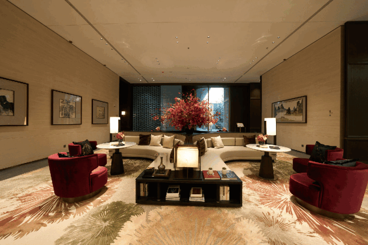 这是艺术会所,打造了行政酒廊、景观洽谈区、VIP洽谈区、红酒雪茄室、女王会客厅、棋牌室和茶室,让艺术融于生活,呈现出多种生活方式。
