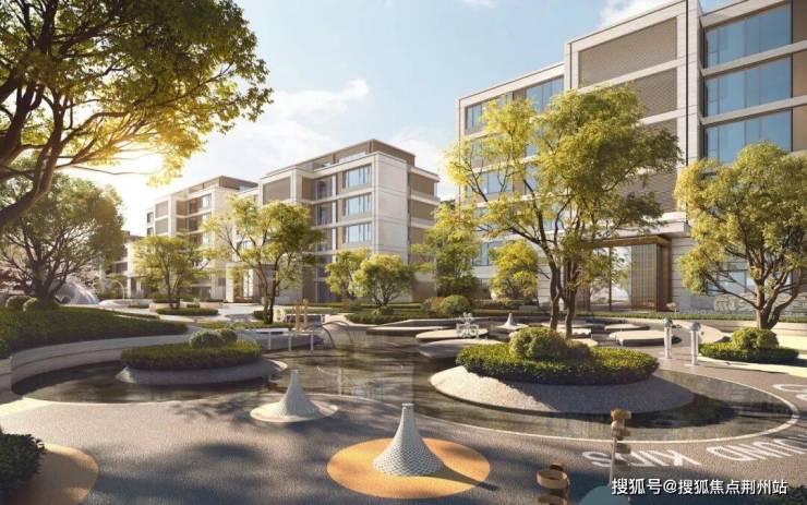 近 4000 ㎡ 多层次核心庭院,让人步移景异、多样化感受主题庭院空间。垂直层级山水庭院, 以模拟自然山林风景的飞瀑,打造多层次丰富体验。