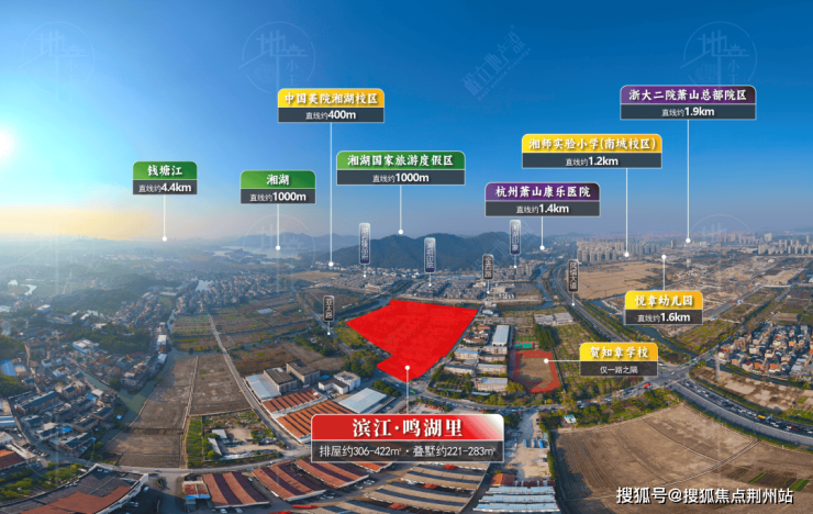 鸣湖里距离湘湖直线约800米,占据了湘湖南岸的黄金位置。随着西湖日益商业化,湘湖作为杭州另一处国家级风景区,其自然资源和居住价值正逐步凸显。鸣湖里在定湖里的正南侧,中间隔了一个已经交付的二手楼盘——湖秀臻和府。