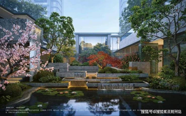 将水系蔓延至架空层及各个景观节点,漫赏滨湖水岸生活体验,名园盛韵的环秀池庭。