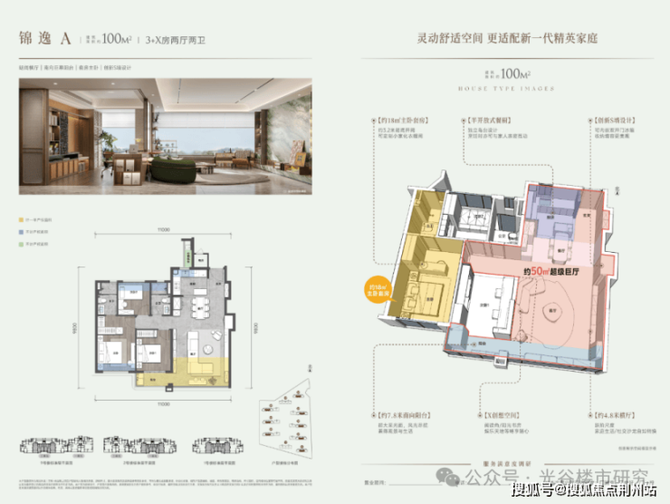 小高层,低公摊第四代住宅,得房率超100%,100平可做3房2厅2卫户型无短板