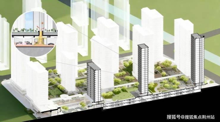 为彻底消融城市与社区的界限,项目以“超级底盘”重构社区基座。通过抬高地库、整合车站与商业配套,将地下空间转化为多功能垂直枢纽。