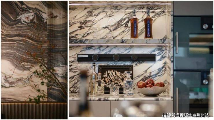 全屋从玄关到客厅,采用大量奢石铺装室内,皮革硬包采用大量弧形线条;厨房采用嘉格纳+博世组合配置;全屋卫生间采用高端岩板通铺。全屋配置华为智能化,联动全屋让生活更简单;全屋采用反渗透级别净软水系统,让生活用水更放心。
