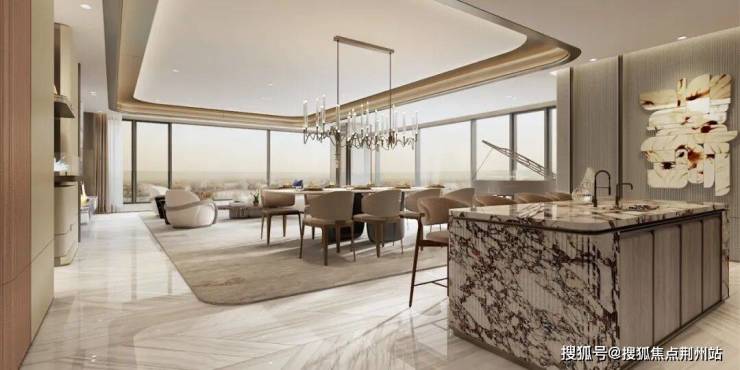 新希望·D10黑珍珠传袭建面约310㎡,客餐厅约90㎡LDK+G四大公共空间洄游式布局,延伸复合型社交主场,落地幕墙体系超大景观尺度,U型连续落地玻璃幕墙,约50M巨幅无遮观江面阔境大面宽,蓝丝绸奢石电视背景墙彰显气质。